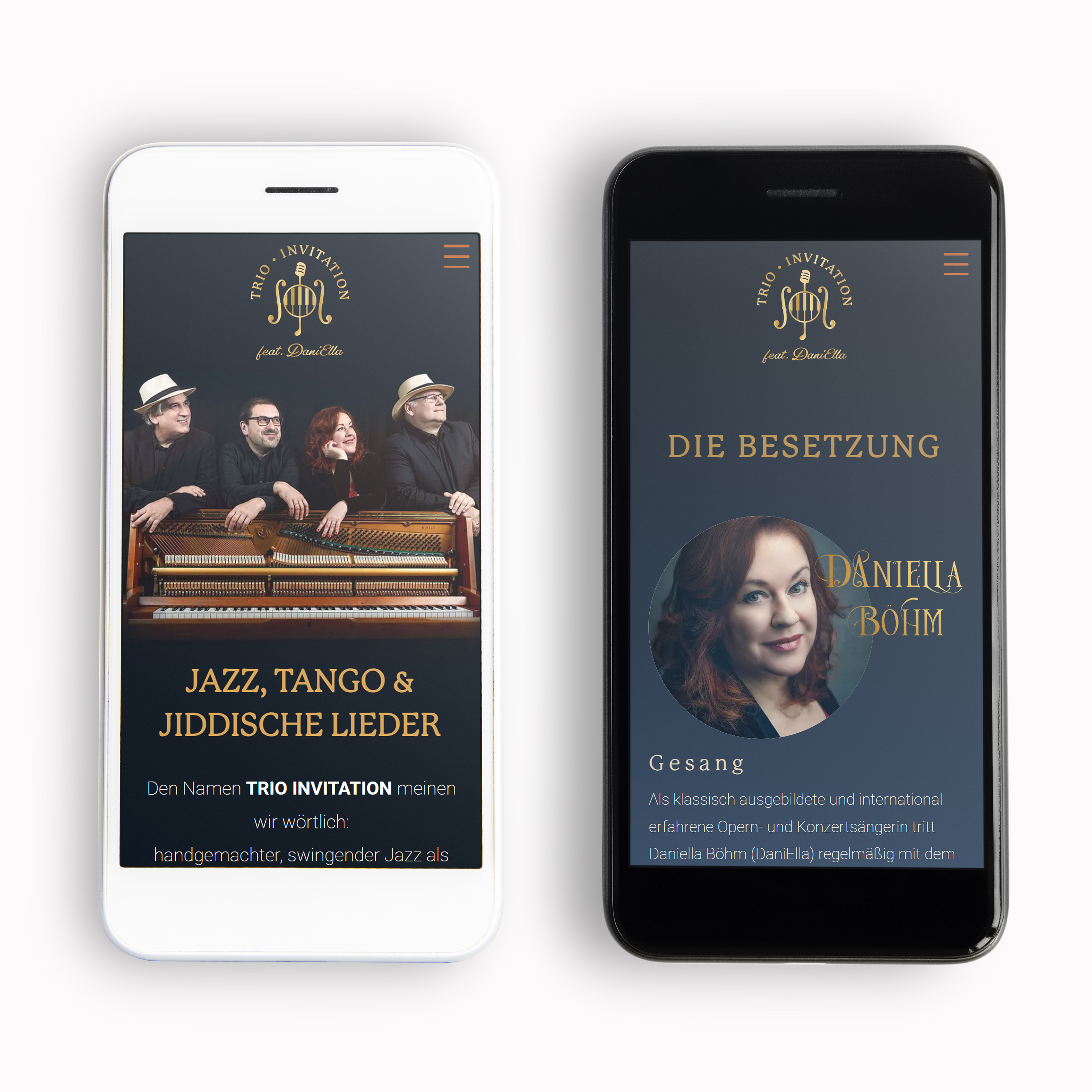 Die Band TRIO INVITATION steht für handgemachten, swingenden Jazz als Einladung zu entspannte Zuhören. Für die sympathische Kombo rund um Sängerin Daniella Rieger-Böhm durfte ich das Band-Logo kreieren und die Website gestalten und umsetzen.