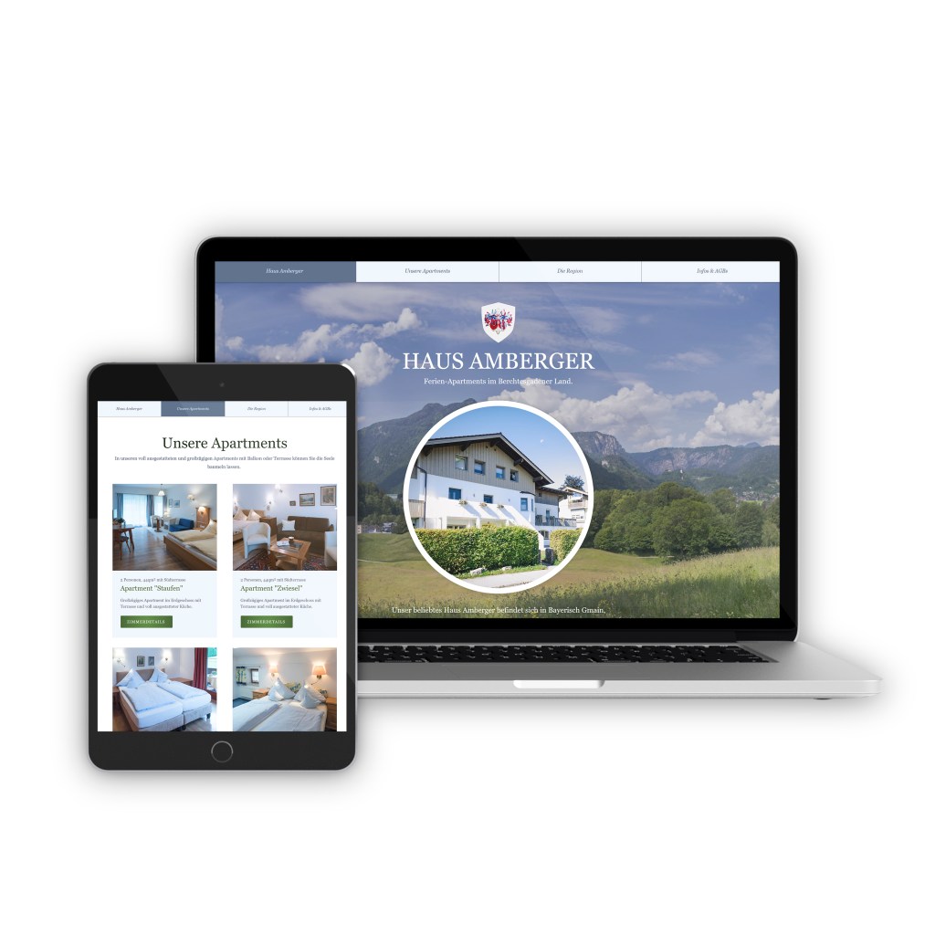 Das Haus Amberger in Bayerisch Gmain ist schon seit vielen Jahren eine beliebte Adresse bei Gästen aus ganz Deutschland und Europa. Für die freundliche Gastgeberin durfte ich nicht nur ihre vier Apartments fotografieren, sondern auch einen neuen Web-Auftritt realisieren. Dazu gehörten die Erstellung des Konzepts, das Design und die Umsetzung mit dem Website- Baukasten WIX.