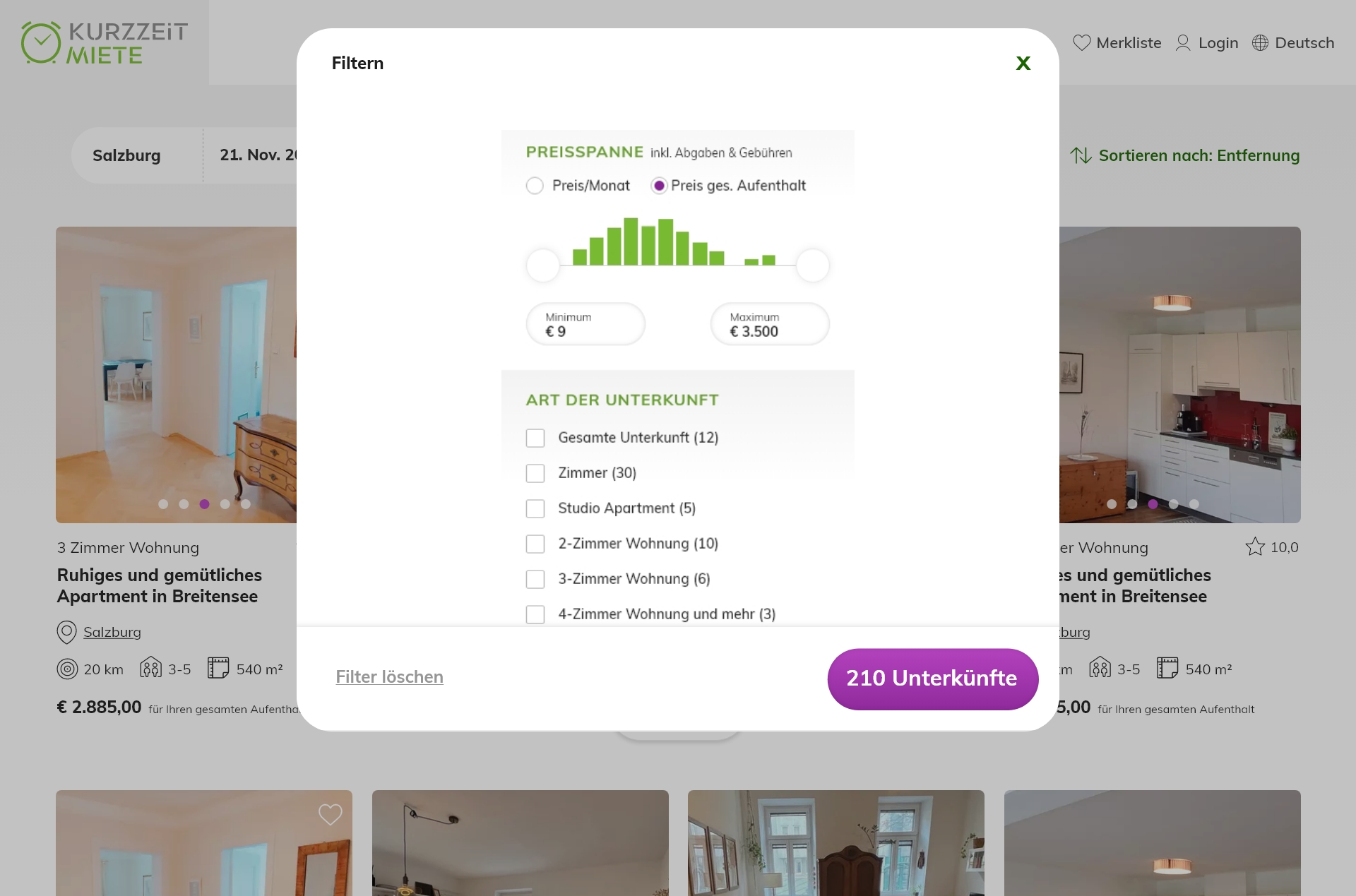 kurzzeitmiete.at ist eine Plattform für möblierte Wohnungen auf Zeit mit Sitz in Straßwalchen im Salzburger Land. Seit vielen Jahren begleite ich nun schon das Unternehmen im Bereich Corporate Design, Print und Digital. Neben der Gestaltung von Online Kampagnen, vollzogen wir zuletzt einen Online Relaunch, bei dem vor allem die Optimierung der Usability des User Interfaces und der Online Buchung auf mobilen Endgeräten im Fokus stand. Zudem wurde ein neues E-Mail-Design angefertigt, welches Hand in Hand mit dem neuen Web Design geht.
