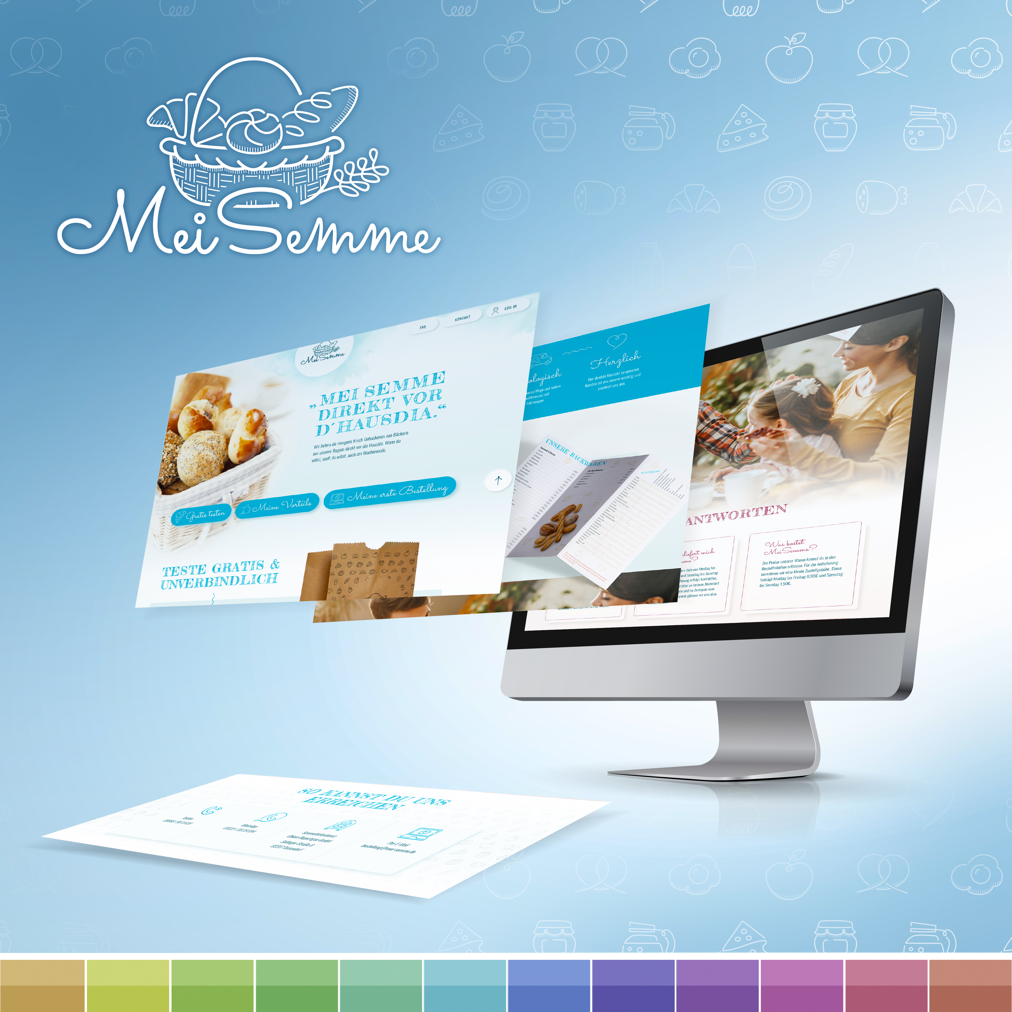 Für MeiSemme, ein regionales Familienunternehmen aus dem Berchtesgadener Land, durfte ich ein umfassendes Gestaltungskonzept entwickeln. MeiSemme bringt morgens frisch gebackene Semmeln und Backwaren direkt von lokalen Bäckereien bis vor die Haustür ihrer Kundinnen und Kunden – mit einem klaren Fokus auf Nachhaltigkeit, umweltbewusstes Handeln und regionale Qualität. Im Rahmen des Projekts habe ich das visuelle Erscheinungsbild der Marke gestaltet, die Website konzipiert und umgesetzt sowie verschiedenste Printprodukte wie Preislisten, Flyer, Bäckertüten und Stofftaschen entworfen. Ergänzend dazu entstanden Werbemittel wie Fahrzeugmagnete und Fensterbeklebungen, die den sympathischen und bodenständigen Charakter des Unternehmens auch im öffentlichen Raum sichtbar machen.